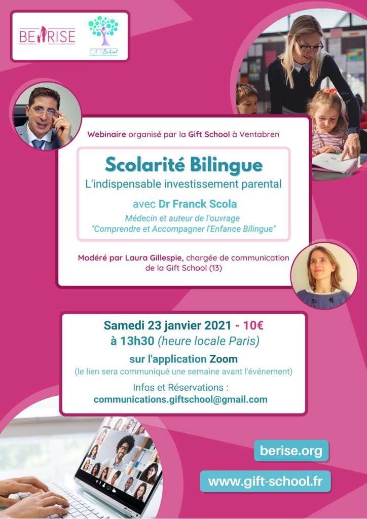 Information: webinaire ‘Scolarité Bilingue’, présenté par le Dr Franck Scola, organisé par la Gift School.